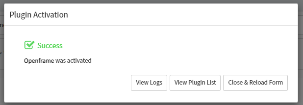 Now the Openframe plugin is installed it will need to be configured