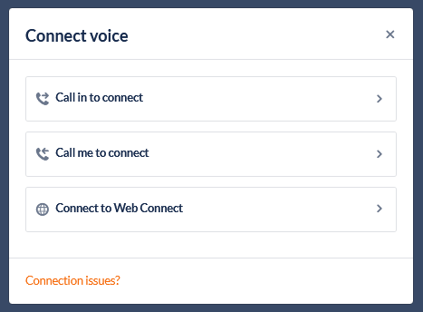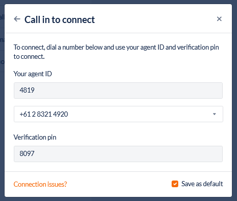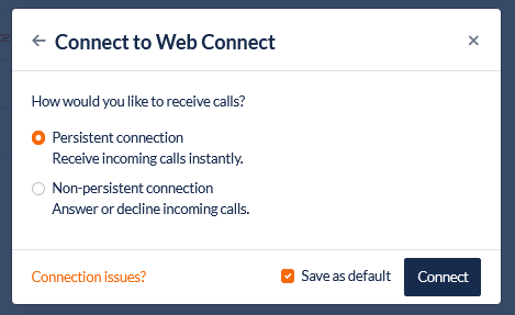 When logged in to the Agent Toolbar the Agent will be presented with this screen to select the voice connectivity mode: