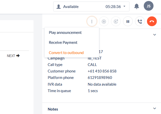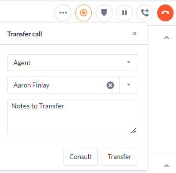 If the call is being transferred, any notes that need to be passed to the next agent need to be entered in the Transfer Notes. See Transferring calls for more information.When the call is finished: