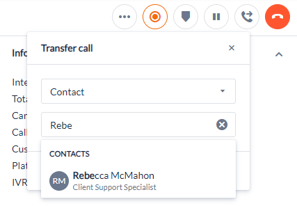 Transfer call: Opens the Transfer call dialog. See Transferring calls for more information.