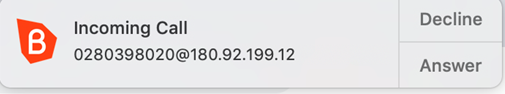 After you have answered the call, the softphone session will remain open until the call is terminated