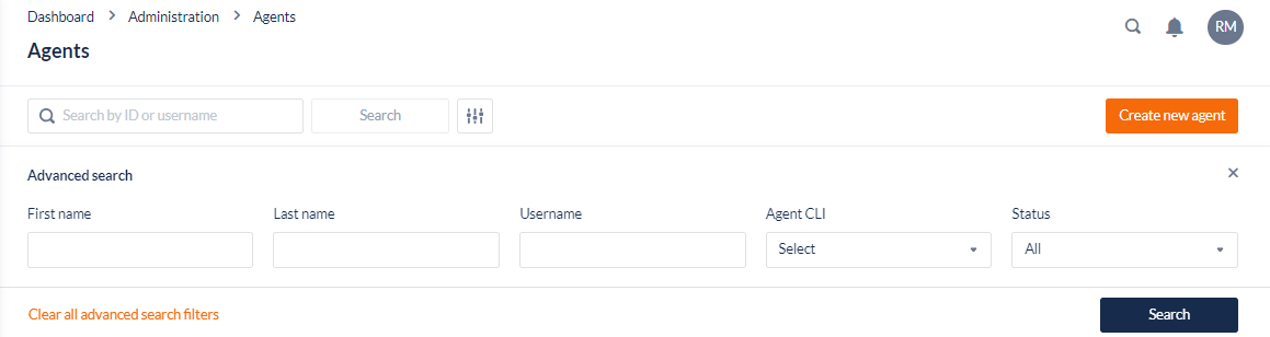 This advanced search feature allows you to reduce the list of Agents displayed by adding one or more search filters.