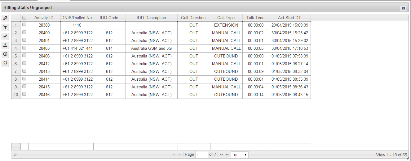 Billing: Calls Ungrouped