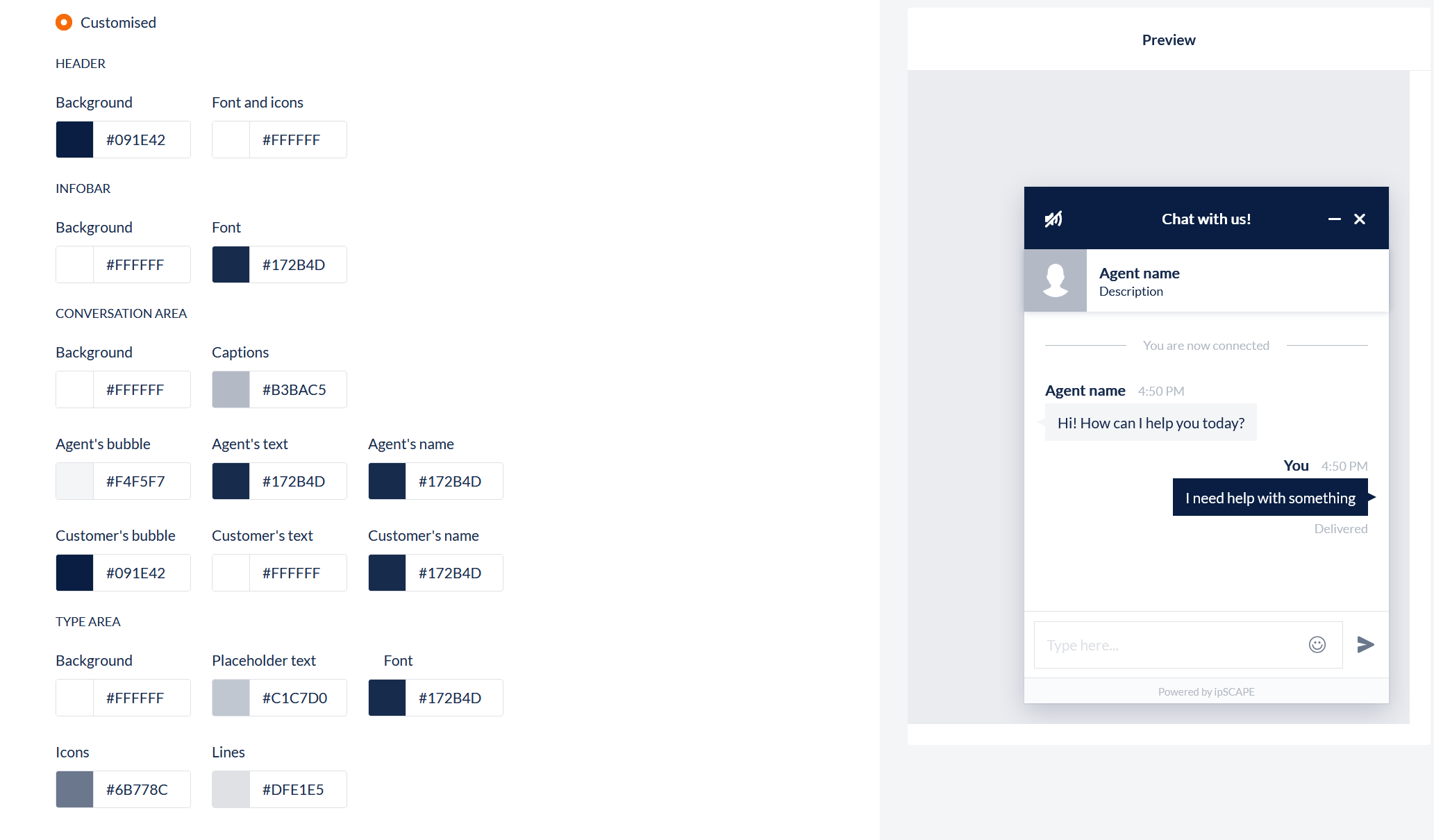 Use the Colour Selection Tool to set the Agent Message Colour.