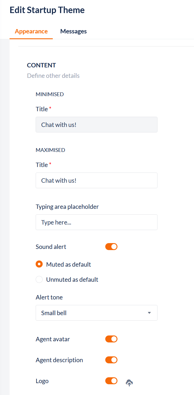 • The user will be presented the Edit page where the appearance and messaging of the chat widget can be updated and tested