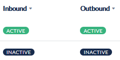 Channel Indicators ![]() | Indicators showing the status of the channel. Active indicates the channel has been validated as is working Inactive indicates the channel has not been validated or is experiencing an issue and may need to be re-validated. |
