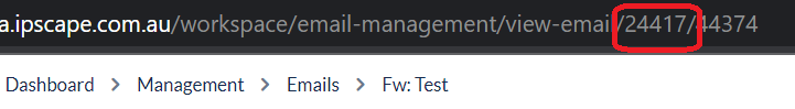 Interaction ID | Displays the ID of the email interaction. Records without an Interaction ID indicate that an email is still in queue waiting to be actioned by an agent. Duplicate Interaction IDs are where the agent has actioned an email, either by sending or replying to an Inbound email. The contact and agent emails are linked with the Interaction ID and can also be found by the Thread ID. The Thread ID can be found when in the View by Email view in the page URL as shown below: ![]() |