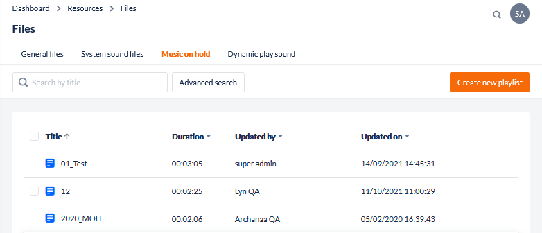 2. Select Files from the Resources menu. There are three file displays available: General Filessound files, and MOH Playlists.