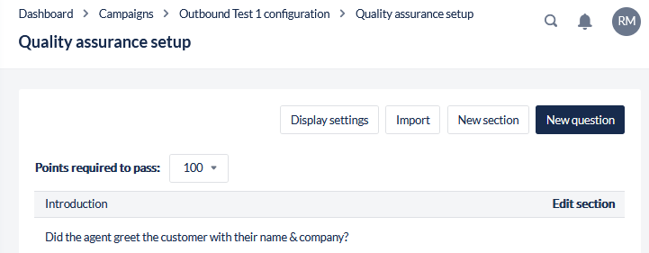 It is recommended to plan out the Quality Assurance scorecard before creating in the Workspace as once the sections and questions have been created they will not be able to be moved or rearranged.