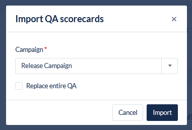This functionality enables a user to import an existing Quality Assurance scorecard from another campaign.