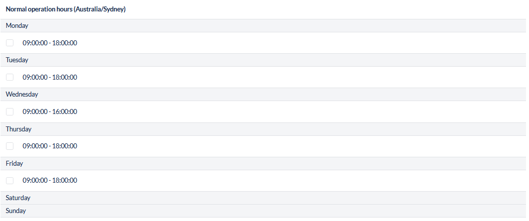 Business Hours Schedule