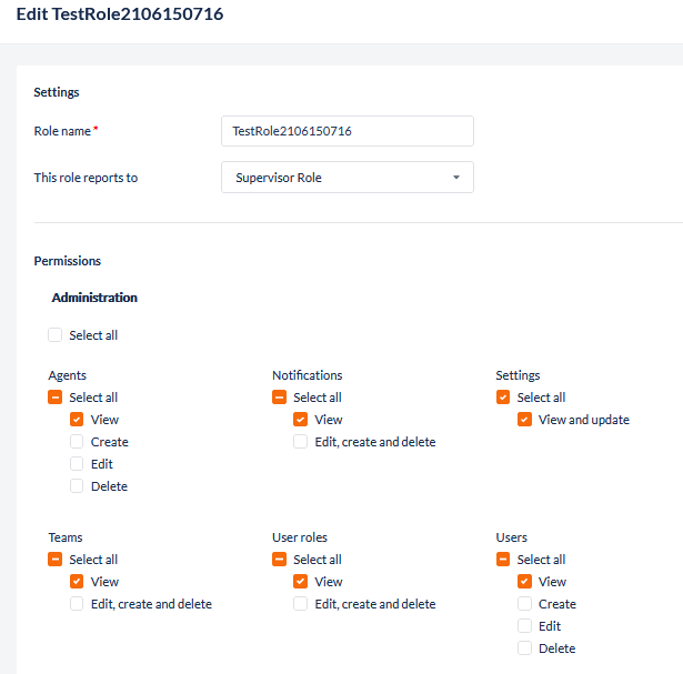 When you do this, you will be presented with a list of available permissions. Now you can select the Administration permissions you want to assign to this User Role by putting a tick in the relevant tick box. Please see the example below: