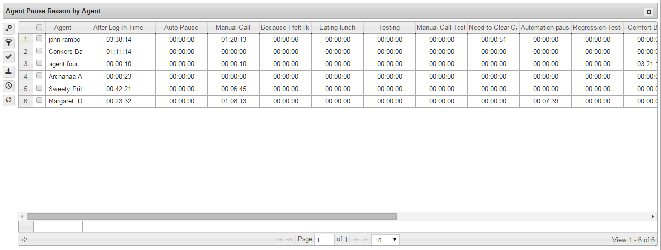 This report provides data on pause reasons used by one or more agents.
