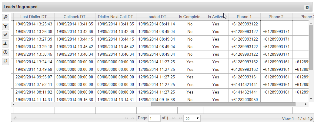 Dialler Next Call Timestamp | There is no default filter set on this field |