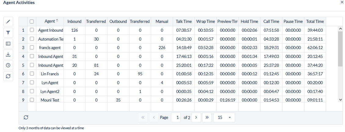Provide dialler statistics for outbound voice campaigns. | |