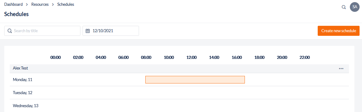 1. Select a Schedule to edit and click Add working hours button in the header