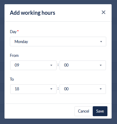 Add or Edit Working hours:
