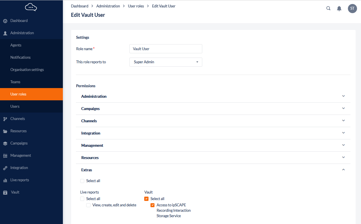Access to VaultSCAPE can be enabled in the User Role under Extras: