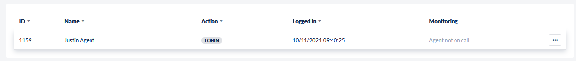 Live Agents Online Details - displays a list with the details of the Agents currently online. Agents can be logged out from here by clicking the [ … ] icon