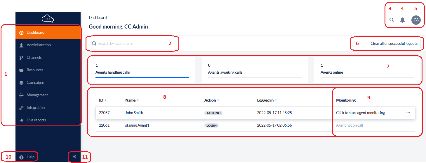This search will filter the results shown on the “Live Agents Online Details” section. This helps users to easily locate Agents on the Dashboard and know their status.Clear unsuccessful logouts