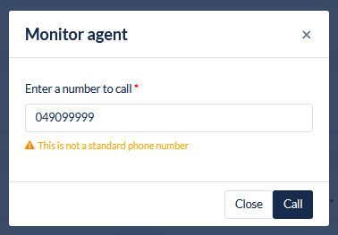 Enter a valid number to use to conduct the monitoring session on and click Call to initiate monitoring